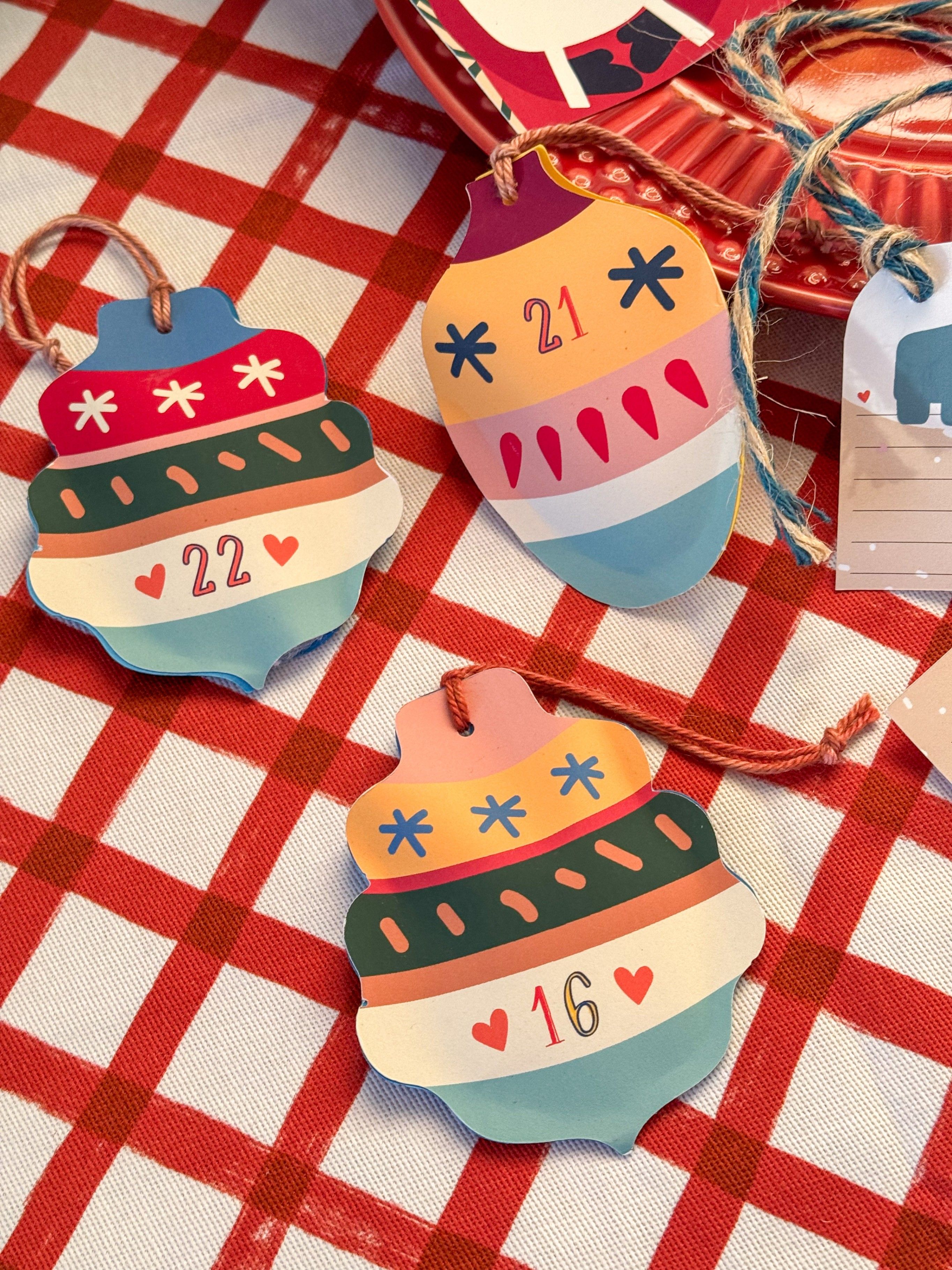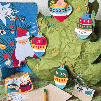 Cada enfeite é um dia de dezembro. Cada dia traz uma curiosidade sobre Jesus ou uma atividade afetiva para fazer em família.